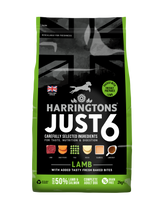 Harringtons Just 6 is a complete food for all dogs aged 8 weeks onwards. The recommended daily servings shown in the chart are a guide only. How much you feed depends on age, breed and level of activity and you should use your own judgement to determine the correct amount of food needed for your dog. For active dogs add 10% more food. Young and growing dogs require feeding little and often and to appetite. Always make sure that your dog has access to fresh water at all times. When changing dog foods, we recommend that you do so gradually. Store in a cool, dry place and fold down the top of the bag after opening.