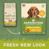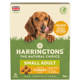 Harringtons small breed adult dry is a complete food for all dogs aged 8 weeks onwards. The recommended daily servings shown in the chart are a guide only. How much you feed depends on age, breed and level of activity and you should use your own judgement to determine the correct amount of food needed for your dog. For active dogs add 10% more food. Young and growing dogs require feeding little and often and to appetite. Always make sure that your dog has access to fresh water at all times. When changing dog foods, we recommend that you do so gradually. Store in a cool, dry place and fold down the top of the bag after opening.