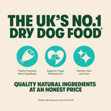 Our new and upgraded recipe is now even more tasty & nutritious, with freshly prepared meat ingredients, vegetables, botanicals, vitamins & minerals in every bite. This specially made recipe is packed full of natural ingredients and is complete and perfectly balanced for growing pups, with smaller kibbles for smaller mouths.
