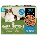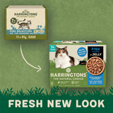 Introducing Harringtons Fish Selection in Jelly Senior Complete Wet Cat Food – the natural choice for your feline friend's golden years. Specially formulated for senior cats, this delicious, grain-free wet cat food offers a mouth-watering variety of freshly prepared fish ingredients, including four different types of fish for a taste your cat will adore.