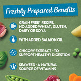 Each tray contains pre-biotics to support gut health & salmon oil to promote a healthy skin & coat which means each meal cares for your dog inside & out.