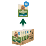 The main difference between our puppy and adult varieties is that puppy contains higher levels of protein to assist with the high growth rate associated with that life stage. Our adult varieties are suitable to feed from the age of 8 weeks, although when feeding an adult variety to a growing puppy we do advise that you feed according to your puppy's appetite. This ensures they grow at the correct rate and consume enough nutrients to support this.