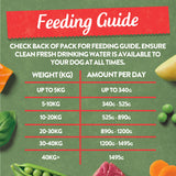 Suitable for all dogs age 8 weeks and older. This feeding guide is to be used as a guide only for a healthy adult dog with normal levels of activity. Adjust the amount given to keep your dog in lean, active condition. If feeding a puppy, adjust according to their appetite to support early development and growth. Ensure clean fresh drinking water is available for your dog at all times. When switching from a different brand to Harringtons; gradually introduce over a period of 3 to 7 days by mixing with your dog’s current food. Increase the quantity of Harringtons and reduce the quantity of your dog’s old food until you are feeding just Harringtons. Store in a cool dry place. After opening keep unused contents in a sealed container. Keep refrigerated & use within 72 hours.