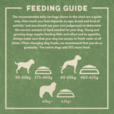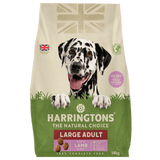 Harringtons large breed adult dry is a complete food for all dogs aged 8 weeks onwards. The recommended daily servings shown in the chart are a guide only. How much you feed depends on age, breed and level of activity and you should use your own judgement to determine the correct amount of food needed for your dog. For active dogs add 10% more food. Young and growing dogs require feeding little and often and to appetite. Always make sure that your dog has access to fresh water at all times. When changing dog foods, we recommend that you do so gradually. Store in a cool, dry place and fold down the top of the bag after opening.