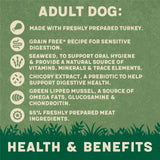 Made with natural ingredients including freshly prepared turkey, added salmon oil to help support healthy skin & coat and inulin to help with digestive health.